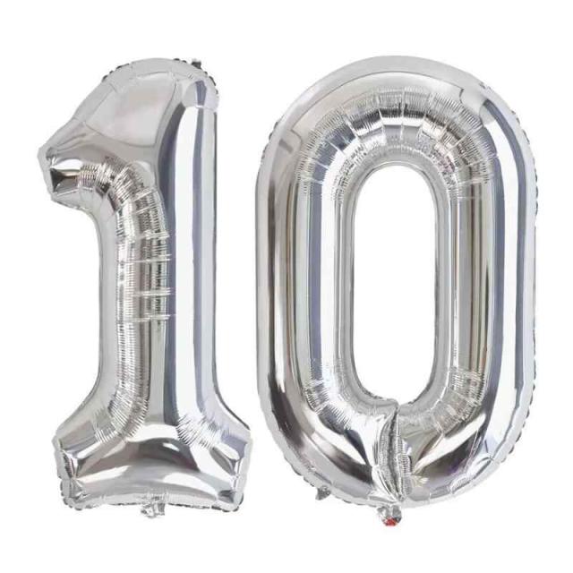 Vthoviwa 32インチ バルーンアルミ0〜100 ヘリウム風船 数字バルーン 0123456789 誕生日 カーニバル 飾り付け記念日パーティー装飾 男女兼用 大きい しじヘリウム (10, 銀)