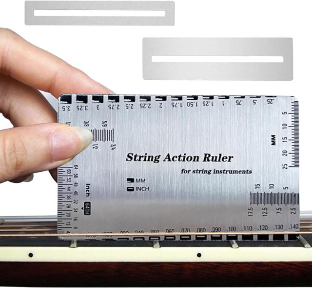 ギター 弦高ゲージ 弦高定規 フレット磨きプレート 3点セット ステンレス製 メンテナンス工具 弦高測定 ベース アコギ対応