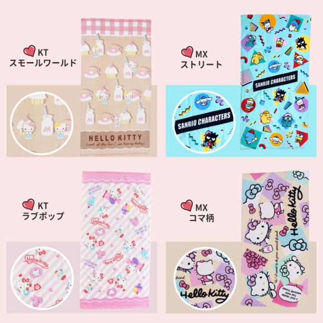 【新柄追加!】バスタオル サンリオ ハローキティ マイメロ クロミ シナモロール ポムポムプリン ポチャッコ バツマル 綿100% 正規ライセンス 60×120cm