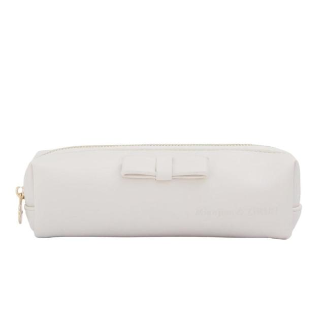 (Mianjian&ZIRUN)ペンケース 合皮リボンペンケース 筆箱 金属ファスナー 大容量 小物入れ スリム 高級 PUレザー 大人 人気 かわいい シンプル おしゃれ (White A)