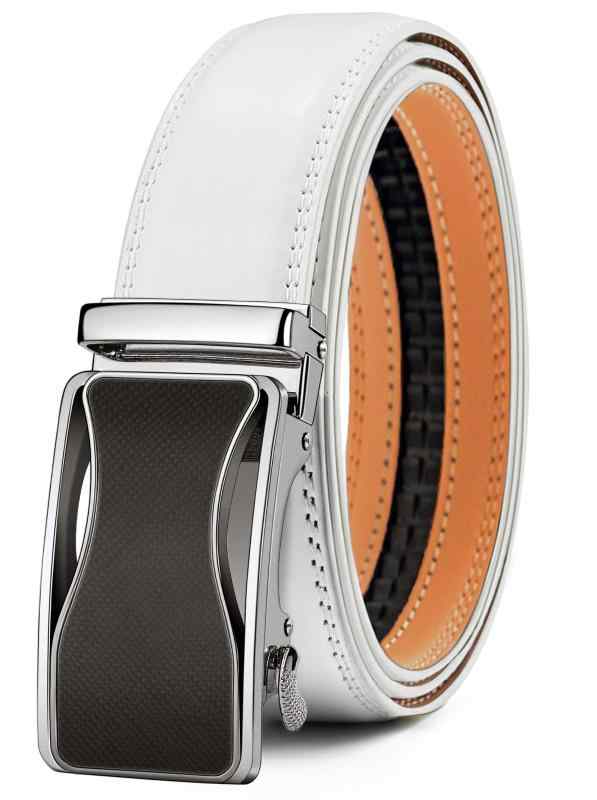 [KEMISANT] ベルト メンズ, ベルトスーツビジネス大きいサイズ紳士用穴なし35mm,無段階調節オートロック式,プレゼント用箱付 (白2764, 全長95cm/ウエストサイズ56-71cm調整可能)