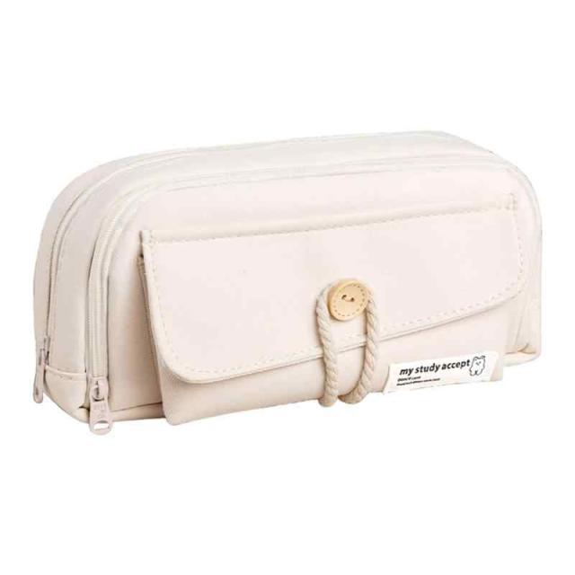 ペンケース 大容量 筆箱 おしゃれ pen case ペン入れ シンプル かわいい ペンポーチ 筆入れ 文具収納 便利 キャンバス 無地 多機能 社会人 中学生 小学生 高校生 大学生 男の子 女の子 学生用 昇進 入学祝い 成人祝い ギフト 男女兼用 (21 cm×11cm×7.5cm, ベージュ)