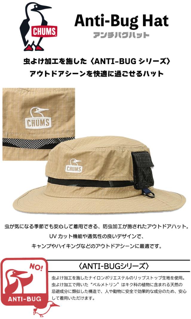 CHUMS チャムス アンチバグハット 帽子 UVカット 紫外線対策 あご紐付き 防虫加工 虫よけ 防虫ハット 日よけ 通気性 夏 アウトドア ハット メンズ レディース CH05-1409