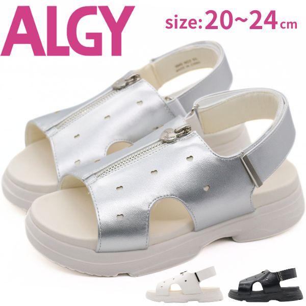 ALGY アルジー サンダル キッズ ジュニア 靴 ホワイト 白 ブラック 黒 ボリュームソール ティーン ニコプチ にこぷち 厚底 おしゃれ 女の子 小学生 中学生 ガーリー ハート チャーム お出かけ 3940