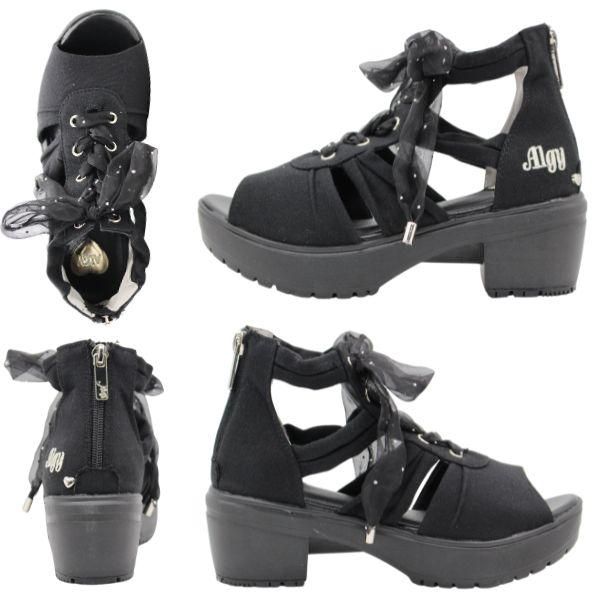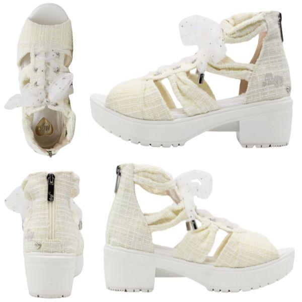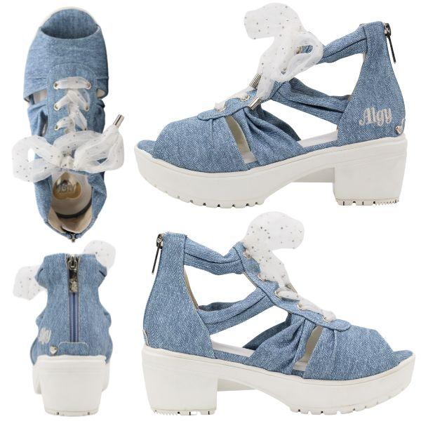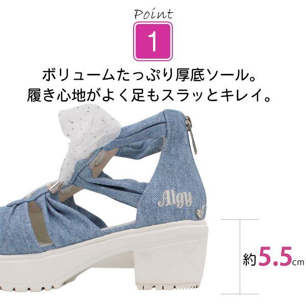ALGY アルジー サンダル キッズ ジュニア 靴 ホワイト 白 ブラック 黒 デニム ボリュームソール ティーン ニコプチ にこぷち 厚底 おしゃれ シースルー リボン ドット 女の子 小学生 中学生 ガーリー ハート お出かけ 3941