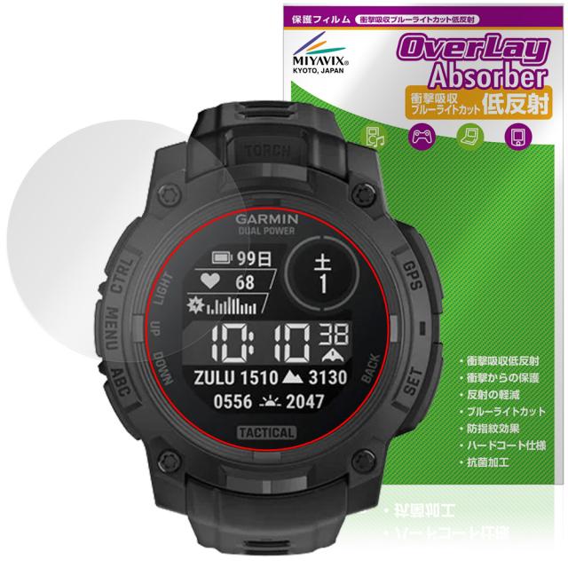 GARMIN Instinct 3 Dual Power Tactical 50mm 保護フィルム OverLay Absorber 低反射 for ガーミン タクティカル 衝撃吸収 目に優しい