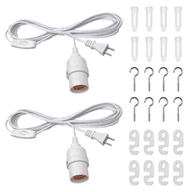 DiCUNO コード付き ソケット E26 電球ソケット コンセント式 スイッチ付き 吊り下げ 4m おしゃれ (ホワイト, 2個入)