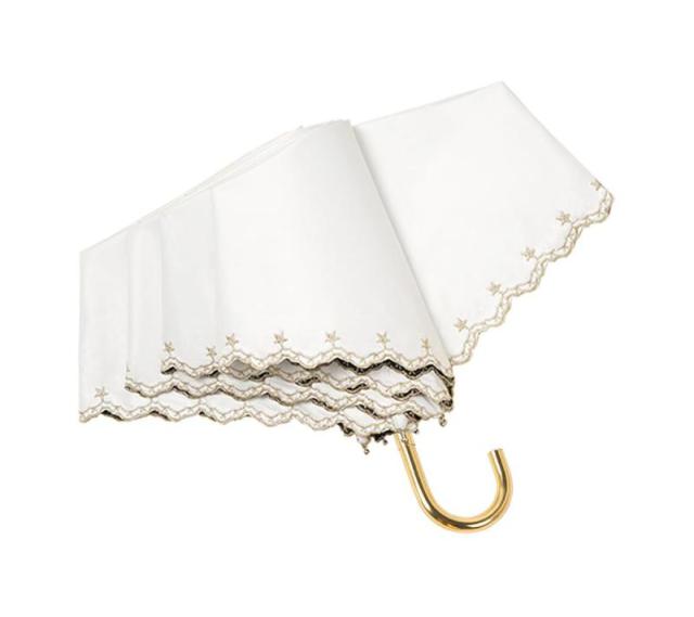hiino kano 超軽量 日傘 おりたたみ傘 レディース 約173g/193g uvカット 完全遮光/遮熱 晴雨兼用傘 植物ラタン製 アルミ製 J型ハンドル かわいい 日傘兼用雨傘 高密生地 超撥水 耐風 携帯便利 プレゼント (星柄刺繍・ホワイト・2)
