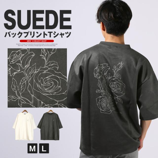 Tシャツ 半袖 トップス カットソー メンズ スエード バックプリント 花 ロゴ 刺繍【フラワーバックプリントスエードTシャツ】 aa-3549
