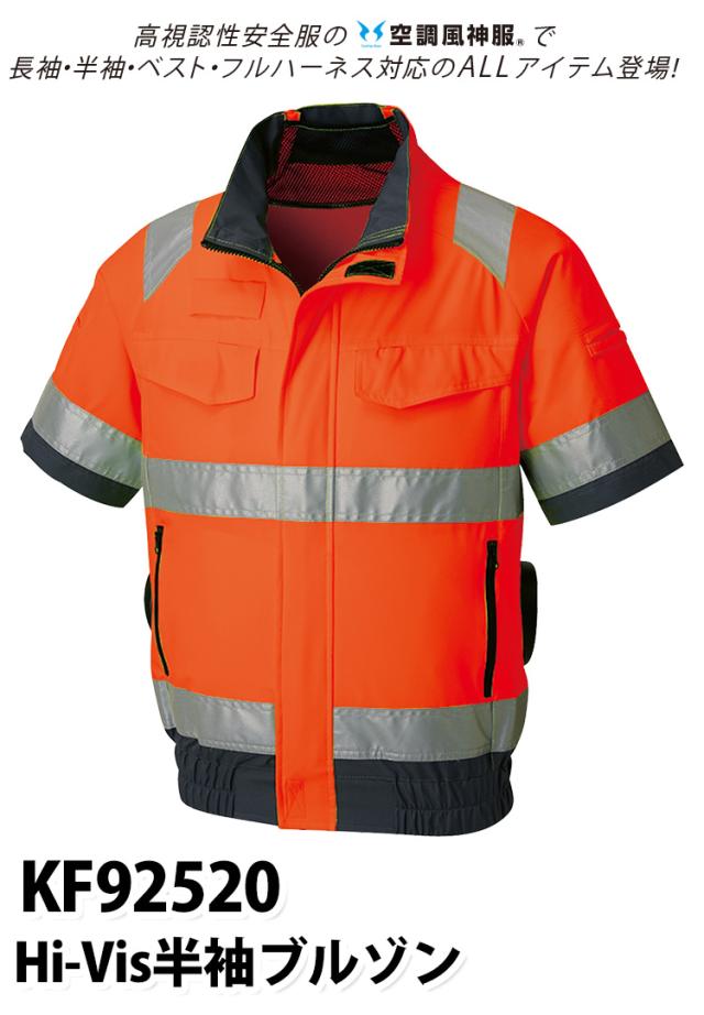 2025年新商品 空調風神服 Hi-Vis半袖ブルゾン 高視認性安全服 KF92520 海外製24Vバッテリーファンフルセット RD9580G RD9530H サンエス 夜間作業 安全服 電動ファン用ウェア 空調作業服 再帰性反射材 SUNS
