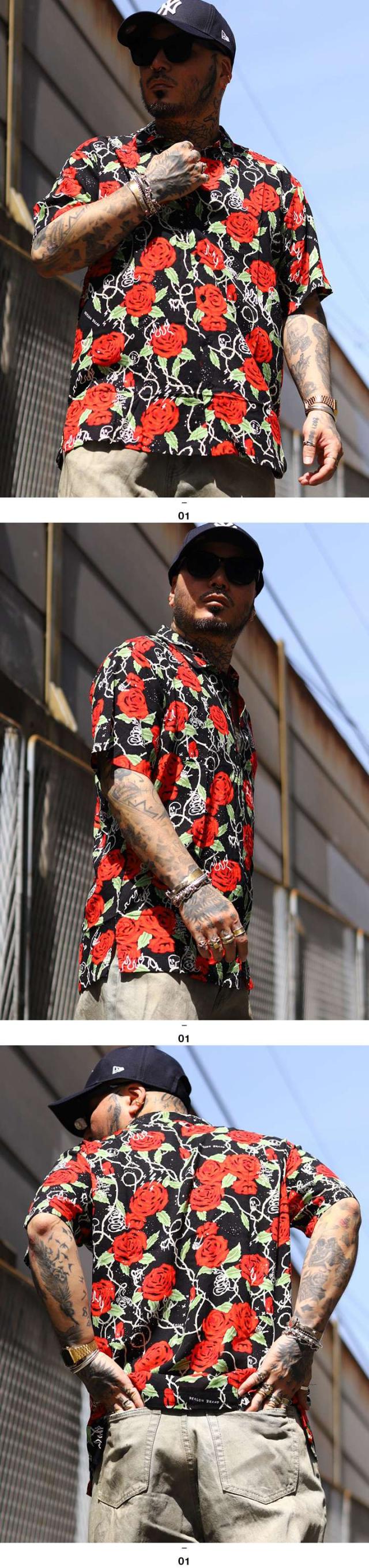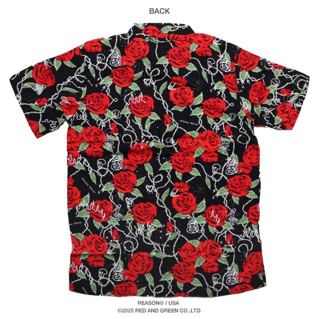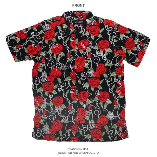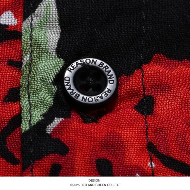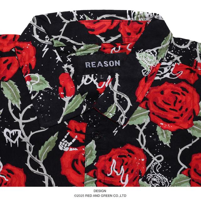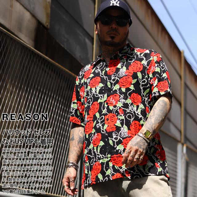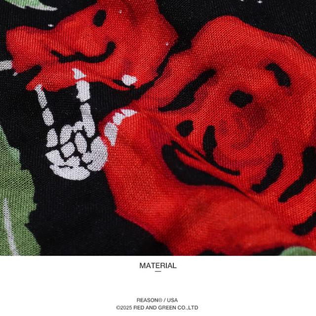 【40%OFF】REASON 半袖シャツ メンズ 赤 大きいサイズ リーズン シャツ 半袖 柄シャツ アロハシャツ おしゃれ かっこいい 花柄 花 植物 薔薇 スカル ドクロ 総柄 大人 ビッグシルエット b系 ヒップホップ ファッション ストリート系 ハイ ブランド 服 2025春夏 新作 A1016