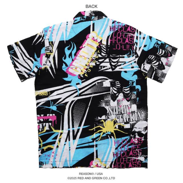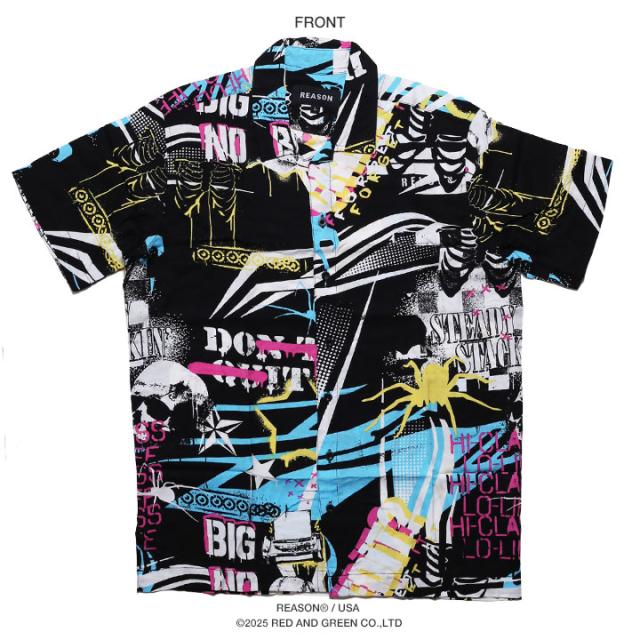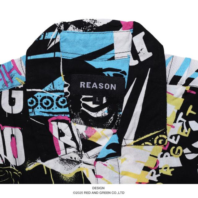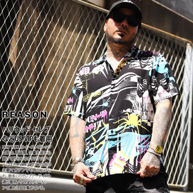 【40%OFF】REASON 半袖シャツ メンズ 黒 大きいサイズ リーズン 柄シャツ アロハシャツ おしゃれ 総柄 大人 80年代風 スポーツカー 車 アメ車 スカル ネオンカラー ビッグシルエット b系 ヒップホップ ファッション ストリート系 ハイ ブランド 服 2025春夏 新作 SA10