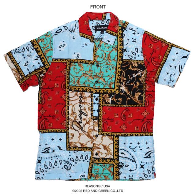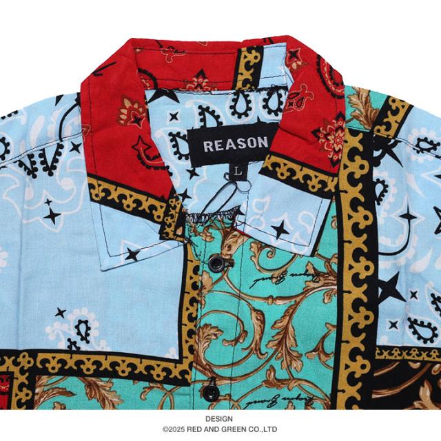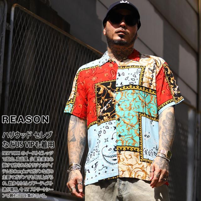 【40%OFF】REASON 半袖シャツ メンズ 水色 大きいサイズ リーズン 柄シャツ アロハシャツ おしゃれ 総柄 大人 バロック柄 西洋 ゴールドチェーン ペイズリー柄 ビッグシルエット b系 ヒップホップ ファッション ストリート系 ハイ ブランド 服 2025春夏 新作 VS126