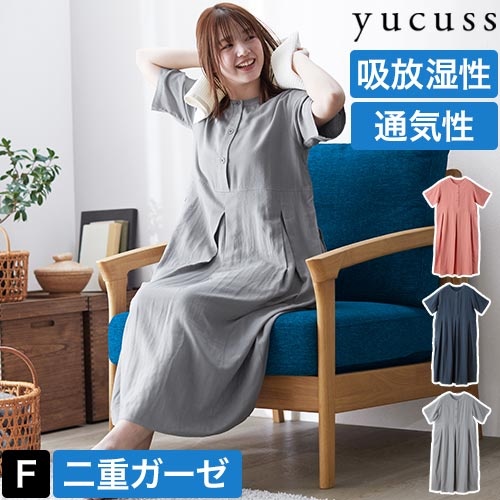 yucuss ルームワンピース 竹レーヨンのガーゼワンピース フリーサイズ 部屋着 ガーゼパジャマ ワンピースパジャマ 寝巻き ルームウェア ナイトウェア 春夏 ポケット レディース 半袖 可愛い おしゃれ おすすめ かわいい 夏用 涼しい ユクスス