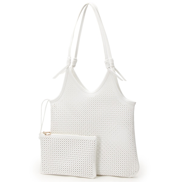 涼し気な全面パンチングのトートバッグ。