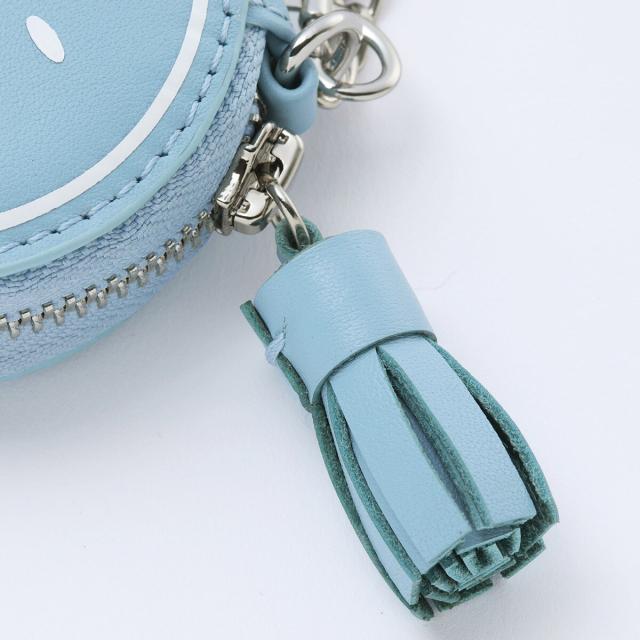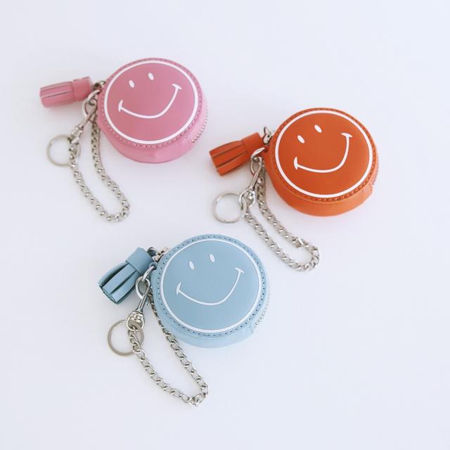 滑らかなタッチのスムースレザーにスマイルをプリントしたコロンとかわいいチャームポーチです。