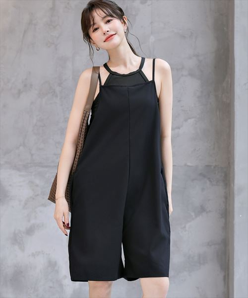 レディース水着 深Uネックでゆったり。ラッシュガードサロペットハーフパンツ