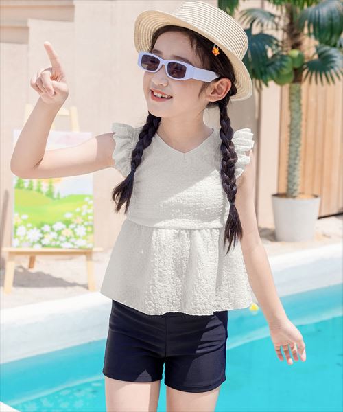 キッズ水着 リップル仕立てのペプラム肩フリルビキニ 上下2点セット