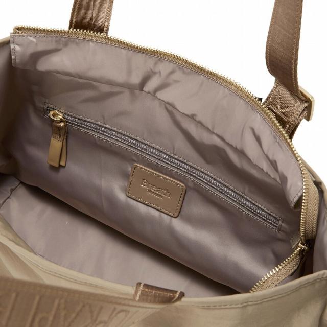 天面は防犯面にも安心なファスナー開閉式で、スマホやICカードなどさっと取り出したい小物の収納には口元に設計されたホポケットが便利です。
