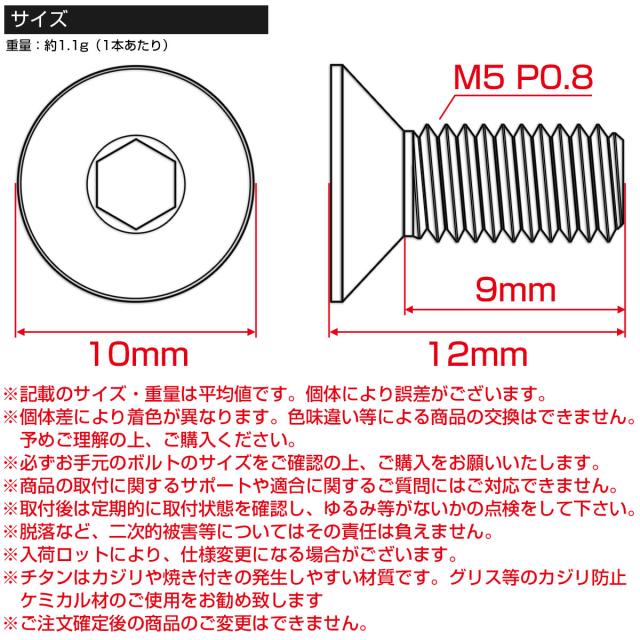 チタン ステアリングボルト M5 P0.8 6本セット 六角穴 ハンドルボルト 皿ボルト レインボー 虹色 JA1895