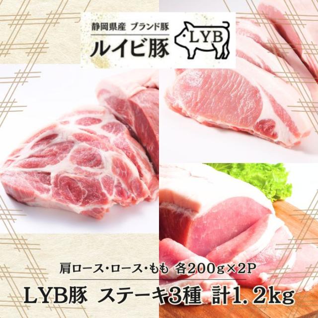 送料無料 静岡県富士山麓豚 ルイビ豚 LYB豚 PREMIUM3種 ステーキセット 計1.2kg 計6枚 200gx3種x2