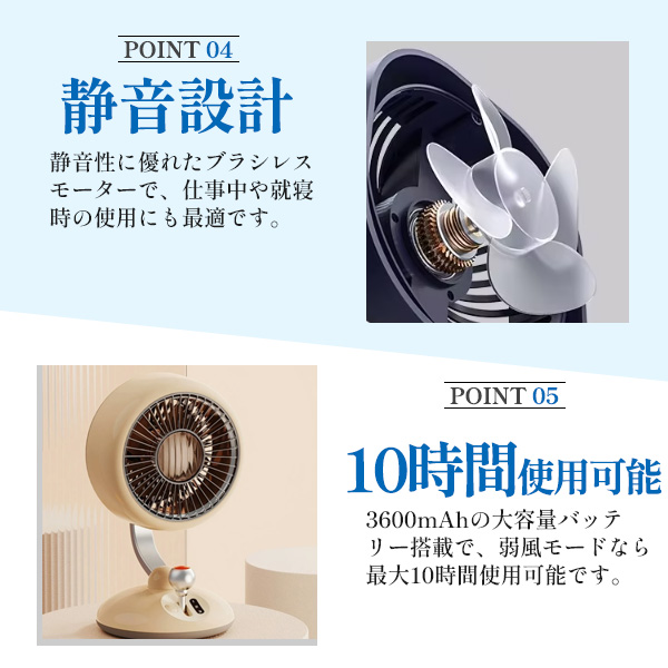 扇風機 充電式 デスクファン ミニ扇風機 卓上 首振り 最大10時間使用可能 Type-C充電 ライト付き 卓上 ミニ扇風機 扇風機 寝室 リビング ファン シンプル かわいい おしゃれ オシャレ 夏 おすすめ 涼しい 室内 屋内 プレゼント ギフト 送料無料