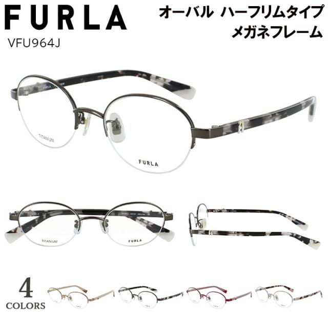 フルラ メガネ フレーム 眼鏡フレームのみ レディース ブランド 大人用メガネ 女性 おしゃれ オーバル ハーフリム チタンフレーム アセテートテンプル ブランド VFU964J 0196 ライトピンク 08F4 オレンジブラウン 08F5 ボルドー 0I86 チャコールグレー 度付き対応