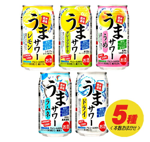 サンガリア うまサワー 4種 飲み比べ(バラエティ)340ml×24本 1ケース チューハイ