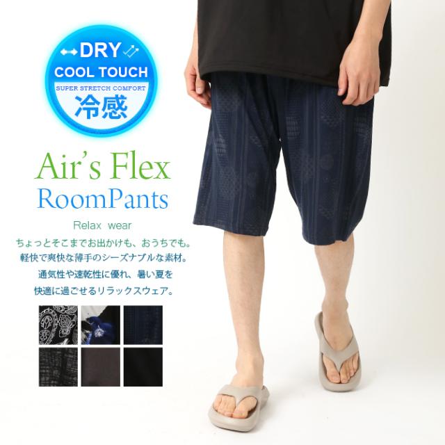 接触冷感 吸水速乾 エアズフレックス ハーフパンツ メンズ 夏 ひんやり 快適 爽快 クイックドライ ショートパンツ 7分丈パンツ 部屋着 ルームウェア