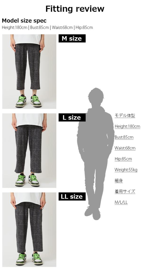 モデル身長:181cm / B85 / W68 / H85 / 着用サイズ:L