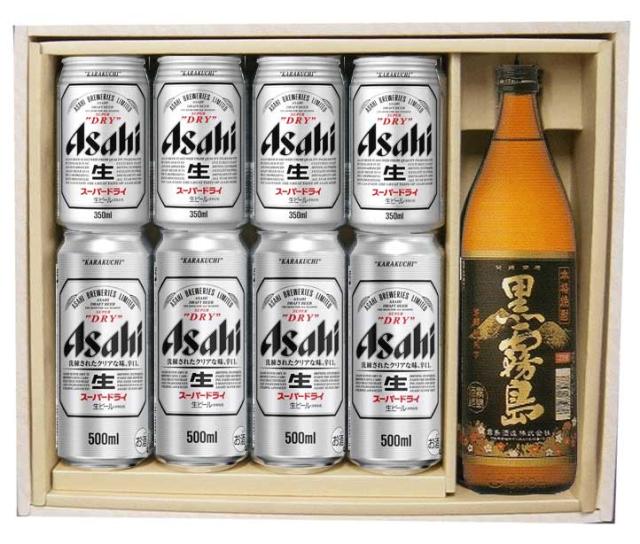 ビール(350ml缶4本・500ml缶4本)と焼酎(900ml瓶)をお好きな組み合わせでギフトにできます。以下より好きな銘柄をお選びください。