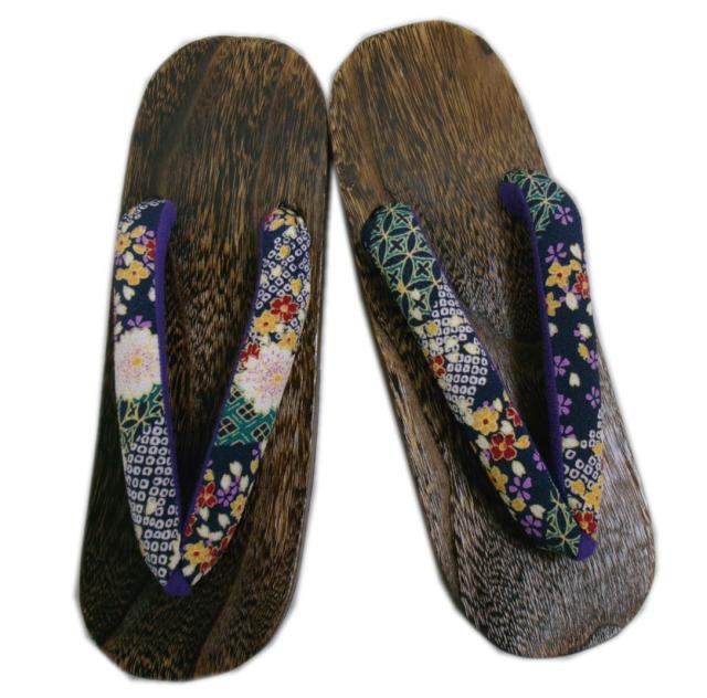 下駄 桐 女性用 大きいサイズ 3L 26.5cm 焼桐茶台 濃紺色地可憐花小桜 浴衣 ゆかた 甚平 レディース ビッグ 和柄 げた ゲタ 26cm 27cm