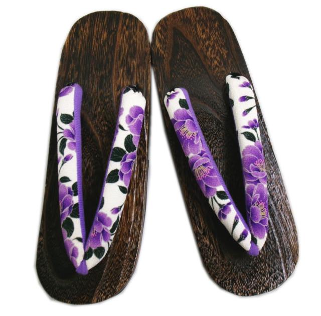 下駄 桐 女性用 大きいサイズ 3L 26.5cm 焼桐茶台 白色地紫八重桜 浴衣 ゆかた 甚平 レディース ビッグ 和柄 げた ゲタ 26cm 27cm