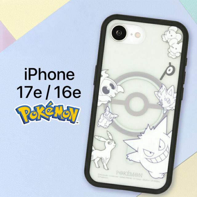iPhone17e 16e ケース ポケモン キャラクター iPhone 16e 17e 耐衝撃 ケース 総柄 ブラック カバー スマホカバー スマホケース アイホン アイフォン16e アイフォン17e