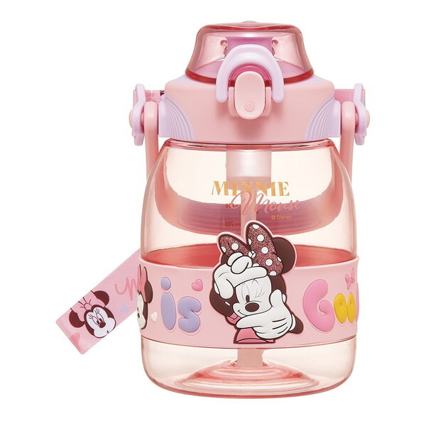 PSHP12 ミニーマウス スケーター ハンドル付き ストロー水筒 1.2L ワンプッシュ開閉 目盛り付き ディズニー