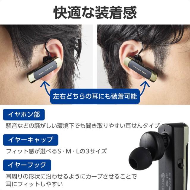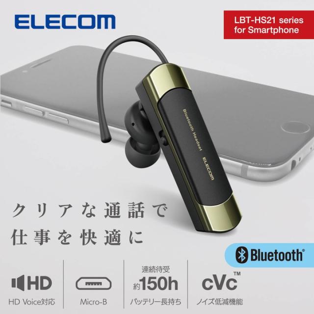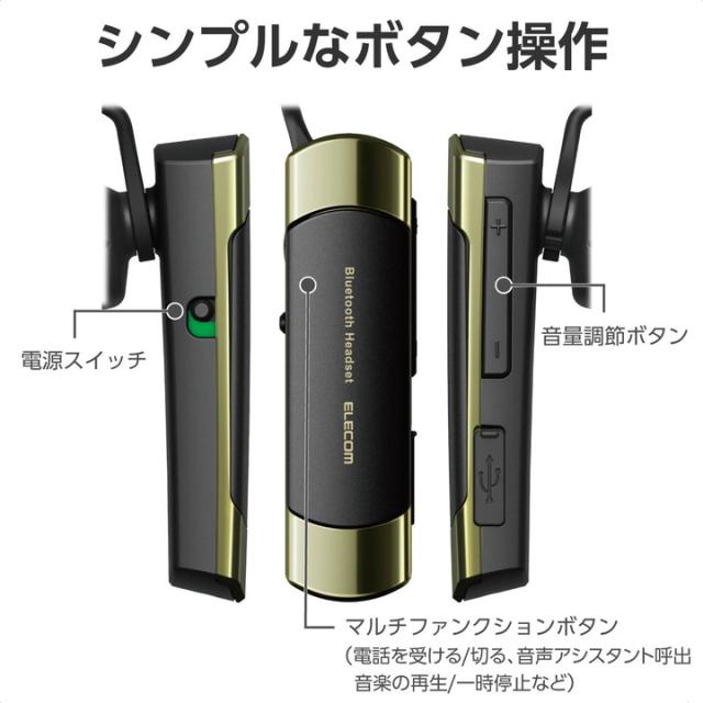 エレコム ワイヤレス ヘッドセット 耳掛け型 Bluetooth 片耳 A2DP対応 HS21 ゴールド ┃LBT-HS21MPGD2