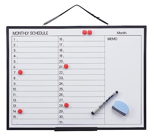・付属品:ボードマーカー(中綿式/黒インク)1本 マグネット付イレーザー 1コ 受け皿(幅18cm) 1コ 休日表示マグネット(直径15mm)6コ