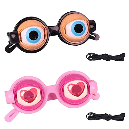 [CHENSS] 2個セットサプラアイズ メガネ 眼鏡 おもしろ 仮装 面白 パーティ 玩具の神様 眼鏡 飛び出す目玉 あごの動きで目の動きが変