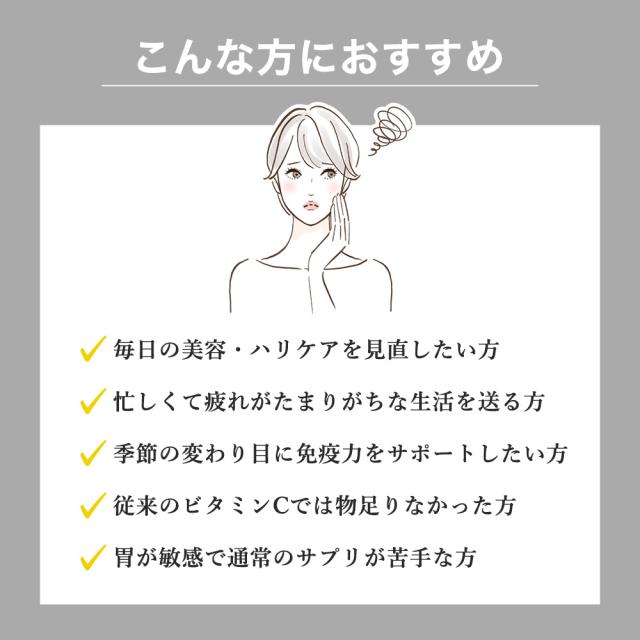 1日4粒を目安に、手軽に栄養補給ができるよう開発されたビタミンCサプリメント。