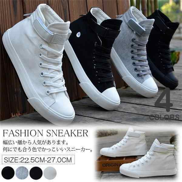 年末祭 スニーカーハイカット メンズ 靴 ペアルック レディース 黒 白 大きいサイズ カジュアルシューズ キャンバス レースアップ