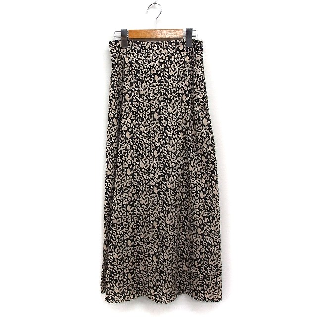【中古】レイカズン Ray cassin レオパード柄 Aライン スカート ロング マキシ丈 F ブラック 黒 /FT34 レディース