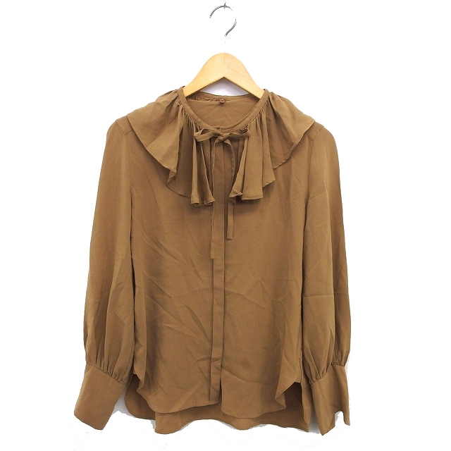 【中古】マルティニーク martinique 付け襟 シャツ ブラウス シフォン ワイド フリル 無地 長袖 キャメル /NT19