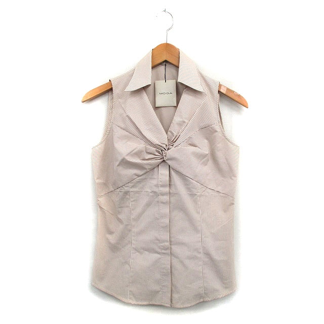 【中古】未使用品 モガ MOGA タグ付き シャツ ブラウス ノースリーブ コットン ストライプ 2 /KT30 レディース