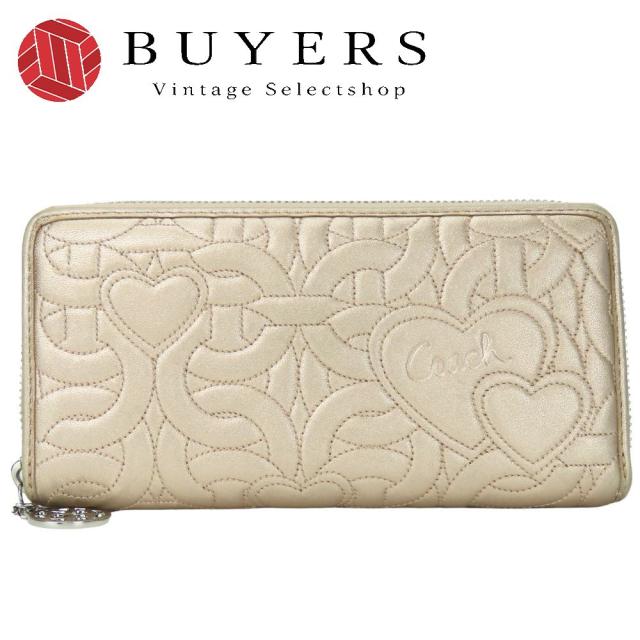 中古 コーチ 長財布 レザー メタリックピンク シルバー金具 ラウンドファスナー ジッピー ハート レディース 女性 COACH