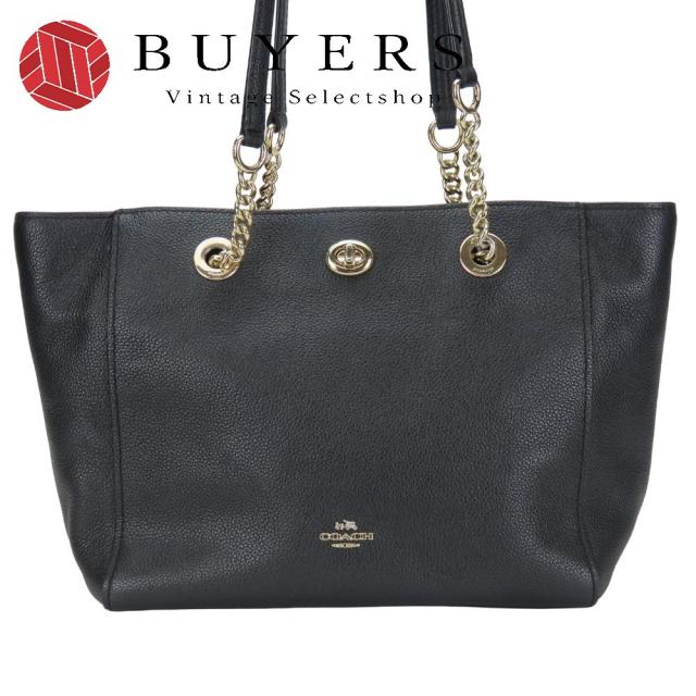 中古 コーチ トートバッグ 57107 レザー ブラック ゴールド金具 肩掛け 通勤通学 シンプル レディース 女性 COACH