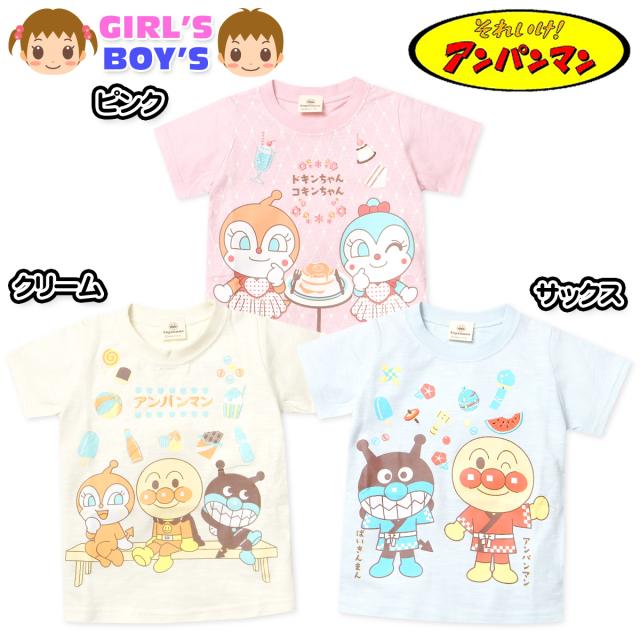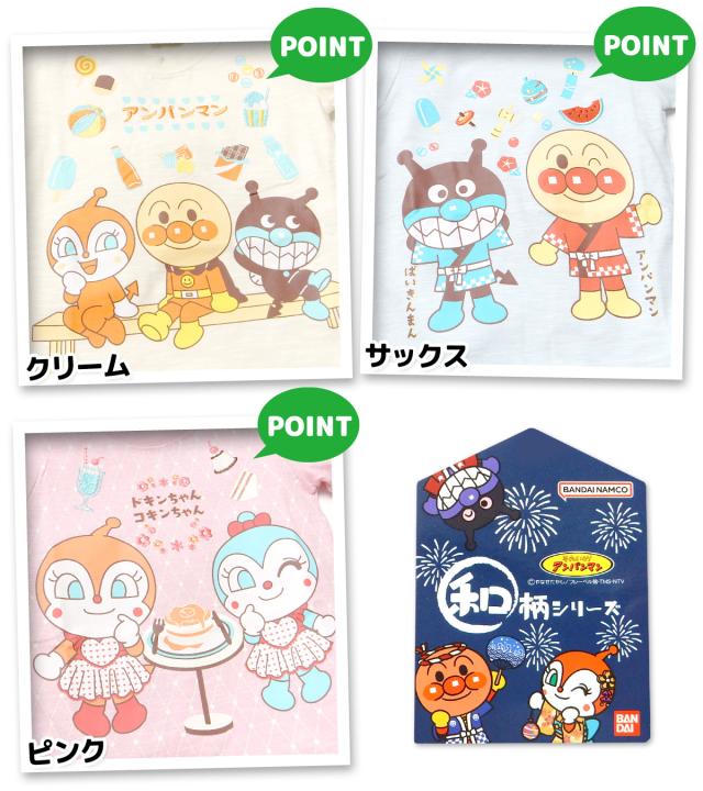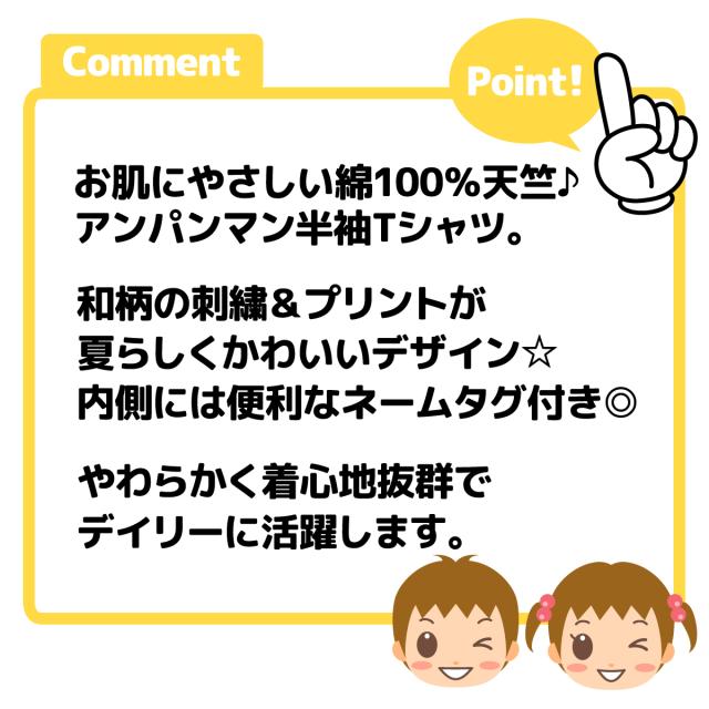 【送料無料】男児 女児 ベビー 綿100% 半袖 Tシャツ アンパンマン 天竺 和柄 刺繍 プリント ベビー服 男の子 女の子 80cm 90cm 95cm iw-1271【メール便対応】