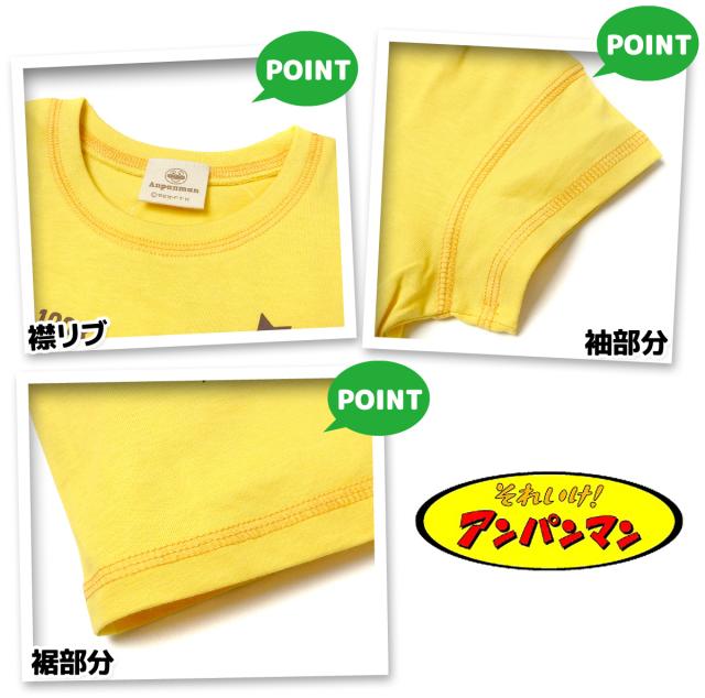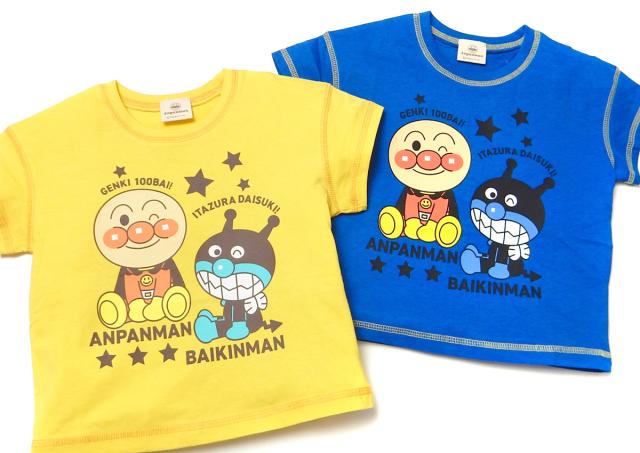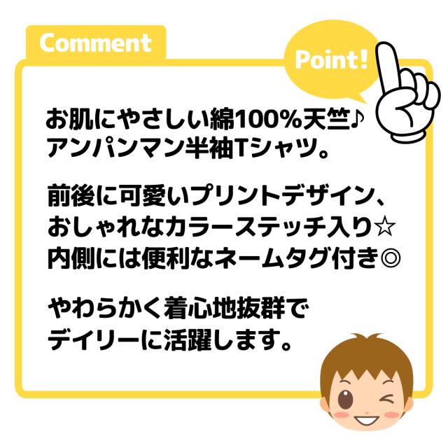 【送料無料】男児 ベビー 綿100% 半袖 Tシャツ アンパンマン 天竺 前後プリント カラーステッチ ネームタグ ベビー服 男の子 80cm 90cm 95cm iw-1298【メール便対応】