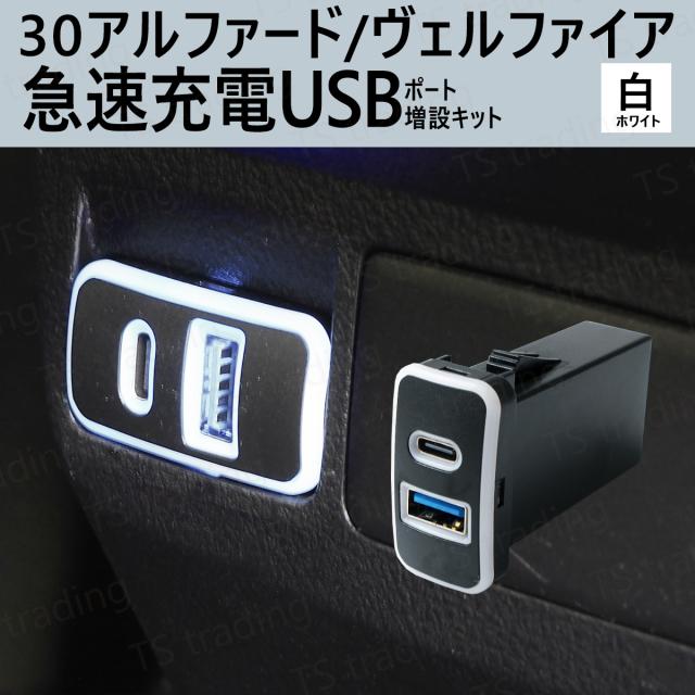 30ヴェルファイア / 30アルファード AGH30W AGH35W GGH30W GGH35W AYH30W 白 リア 2列目 後部座席 センターコンソール裏 Aタイプ Cタイプ スマホ 携帯 電話 充電 USB ポート LED USBポート 充電器