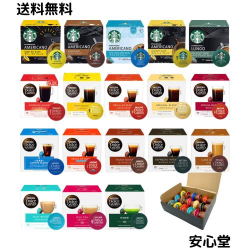 ??【セット内容】◆ドルチェグストの専用カプセルが18種類 各1個ずつ入っています。(計18種 18杯分)。?サニー デイ ブレンド(スターバックス)、?ハウス ブレンド(スターバックス)、?ライトノート ブレンド(スターバックス)、?パイクプレイス ロースト(スターバックス)、?アイス アメリカーノ(スターバックス)、?モーニングブレンド、?リッチブレンド、?レギュラーブレンド(ルンゴ)、?モカブレンド、?オリジナルブレンド、?アイスコーヒーブレンド、?レギュラーブレンド(カフェインレス)、?ロースト ブレンド、?エスプレッソ インテンソ、?カフェオレ、?フラットホワイト、?ミルクティー、?宇治抹茶。