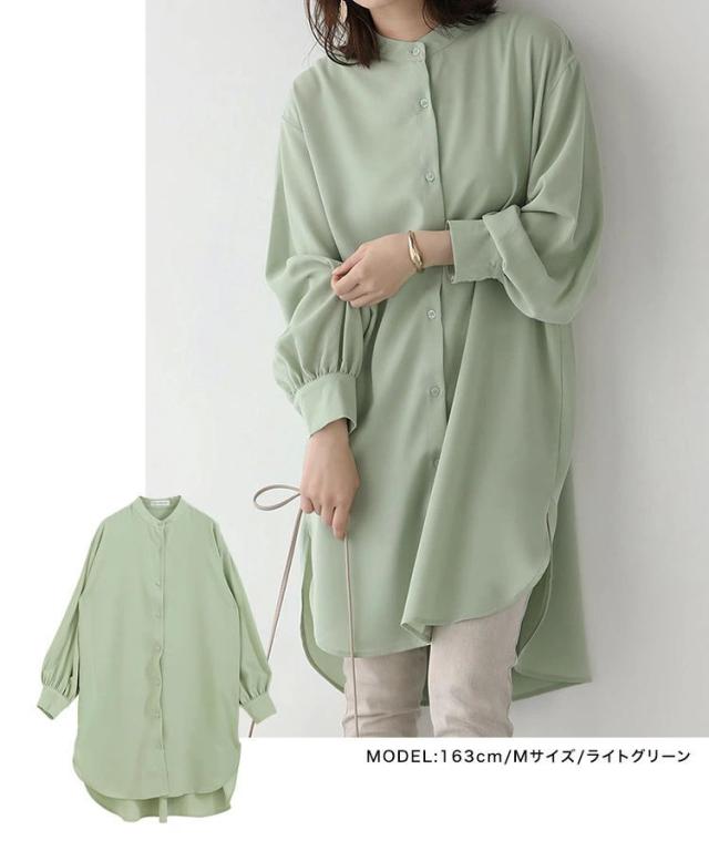 2025年春夏新作 レディース ルーズフィット ミディ丈シャツワンピース トレンディなロングスリーブデザイン オーバーサイズ シンプル無地 通勤おしゃれ